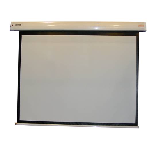 This is an electric projection screen. The screen adopted a roller mechanism which is electricity powered. When the screen is turned on, it rolls down the screen body slowly with the built-in motor and the screen will be ready in a minute.