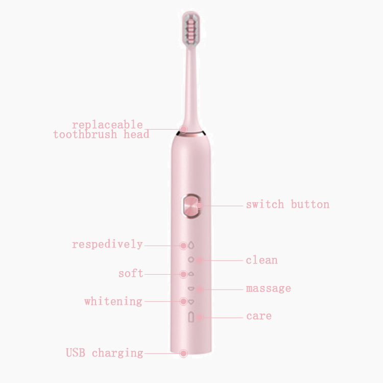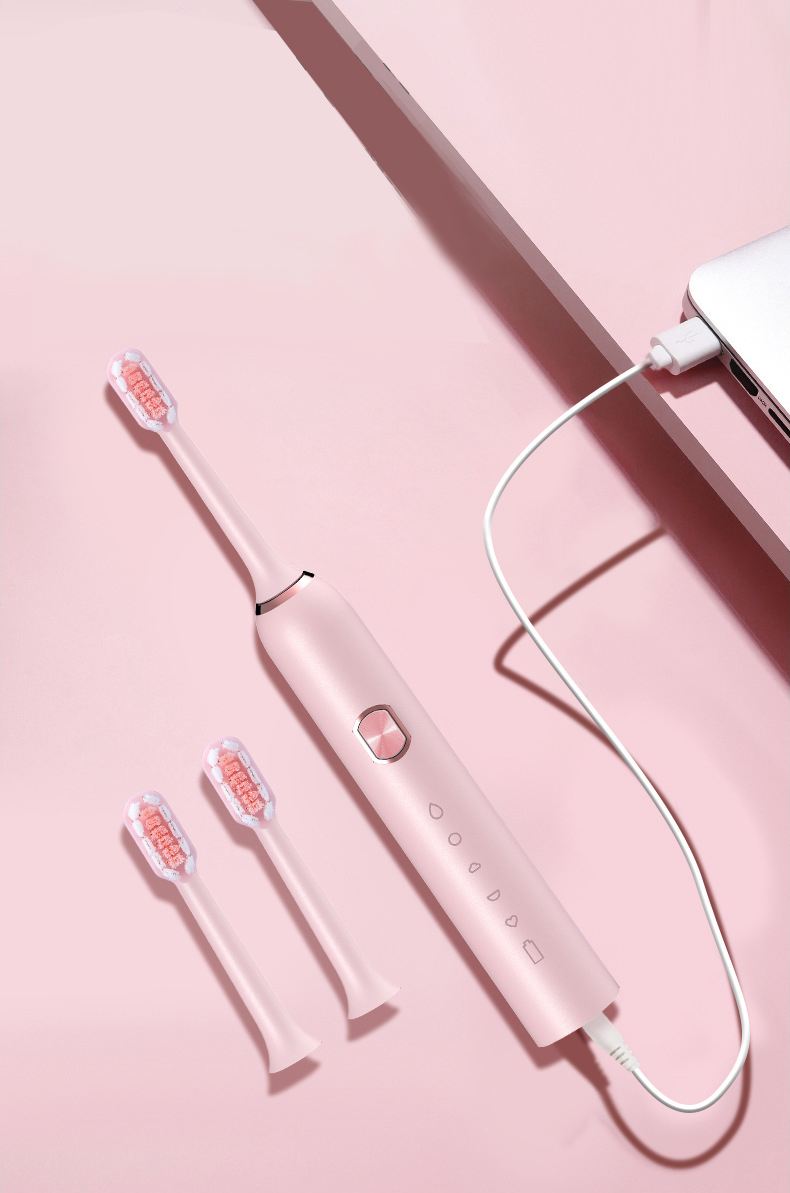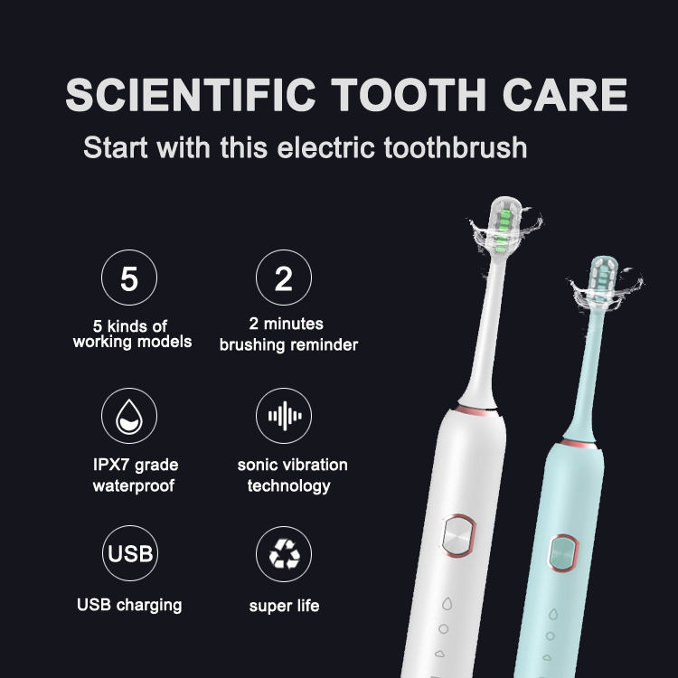 | Detailed information | Power: USB Charge Frequency: 40000 Strokes/min Mode: 5 modes (clean, soft, massage, whitening, care) Dimension:155x27x27mm Weight:85g Two minutes timer Reminder for every 30 seconds Each set including: brush heads*2, USB cable*1, Instruction |