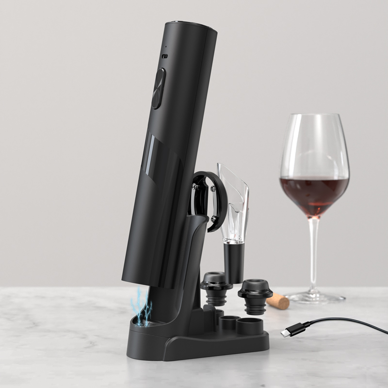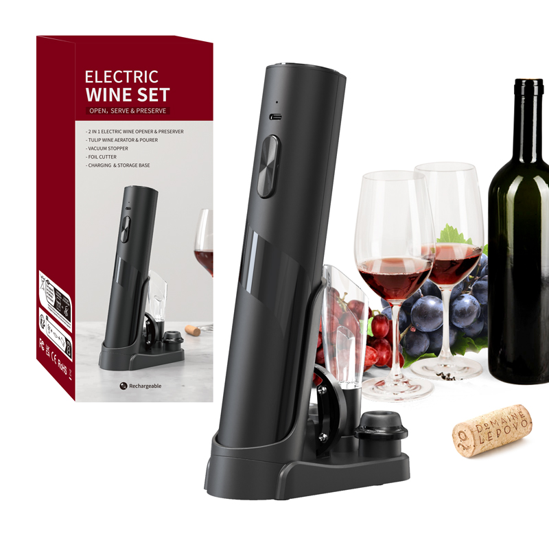 Include: KPS-372301C Rechargeable Electric Wine Opener, Foil Cutter, Tulip Wine Aerator & Pourer, 2 Stoppers, KP1127 Charging Base, Charging Cable, Manual Book, Color Box