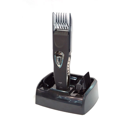 This electrical hair clipper features a stylish, modern design. This user-friendly tool allows you to trim hair easily and safety at home. This reliable, well designed tool comes with a matching base for charging and storage.