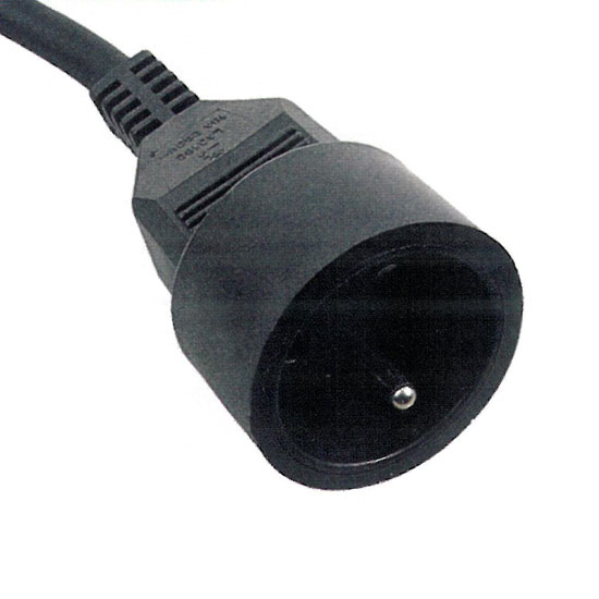 This electrical plug comes with a round pin and two flat pins. It is attached to a durable round cable with an insulated black jacket. This reliable plug is widely adopted in various products.