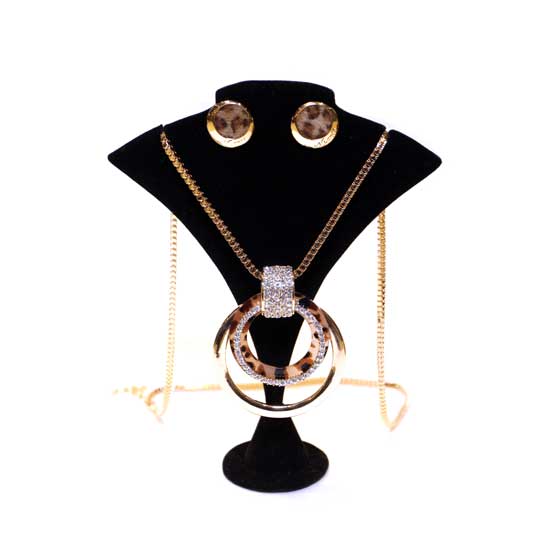 This is an alluring jewelry set with an electro gold-plated design. The jewelry set comes with a pair of round earrings and a matching necklace. They are designed with leopard patterns, showcasing a wild yet chic accent. This stylish jewelry set goes well with street-chic look.