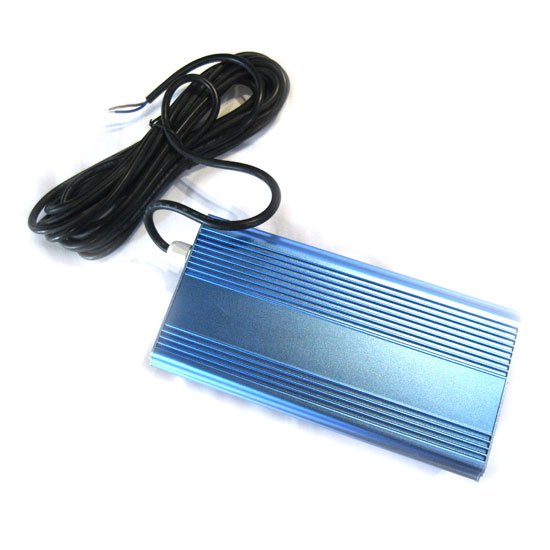 This electronic ballast features a compact rectangular blue casing with a external power cord. The high-performance ballast offers stable and low-noise operation. It guarantees a long lifespan and requires little maintenance.