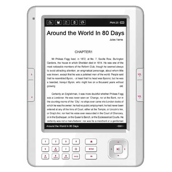 This E-book reader provides a long battery life up to 6,000 page-flips for a single charge, with low energy consumption. This slim device is only 9.0mm thick and with a music function. Enjoy the great convenience with other features including book marking, book searching, auto resume, image viewer and multiple language OSD functions.