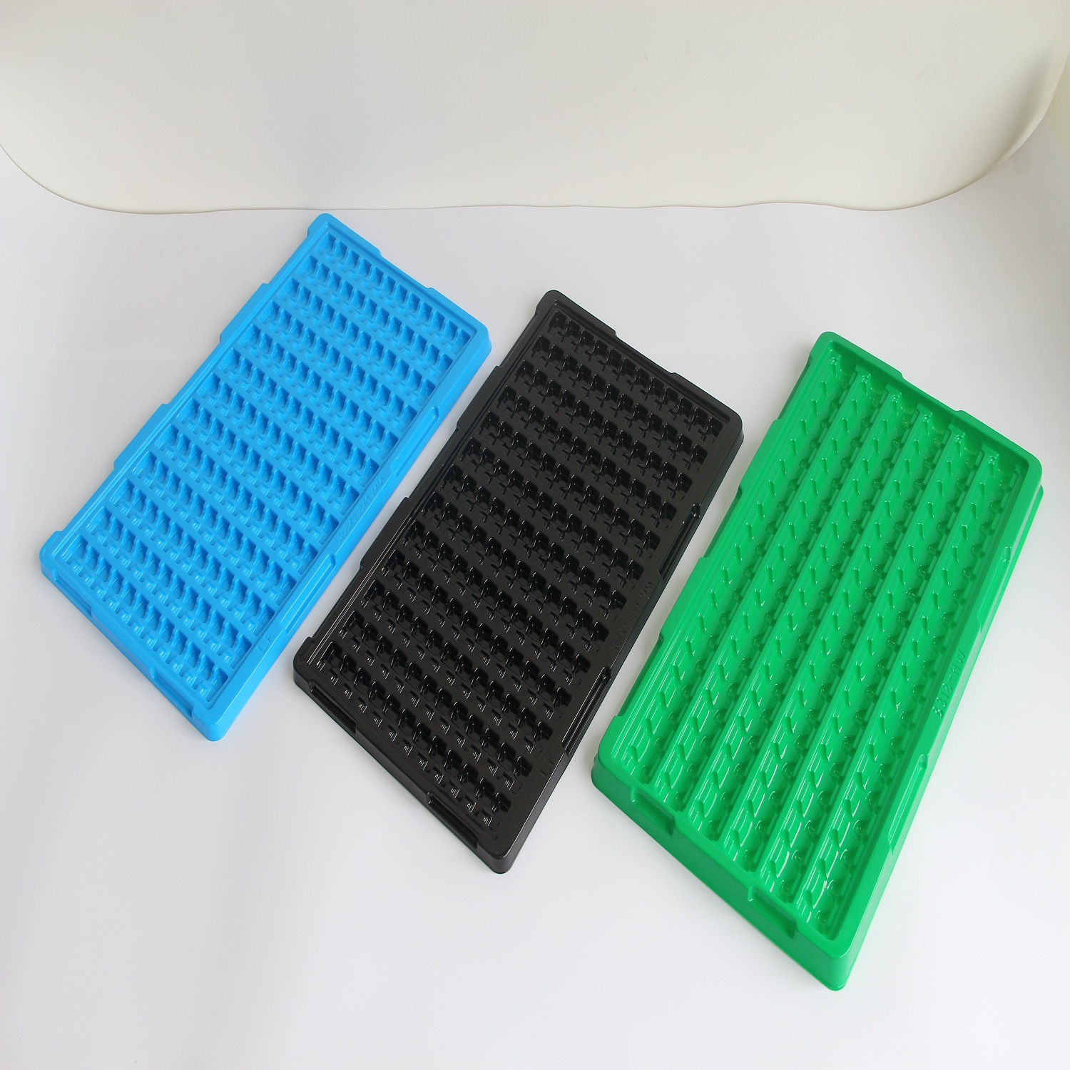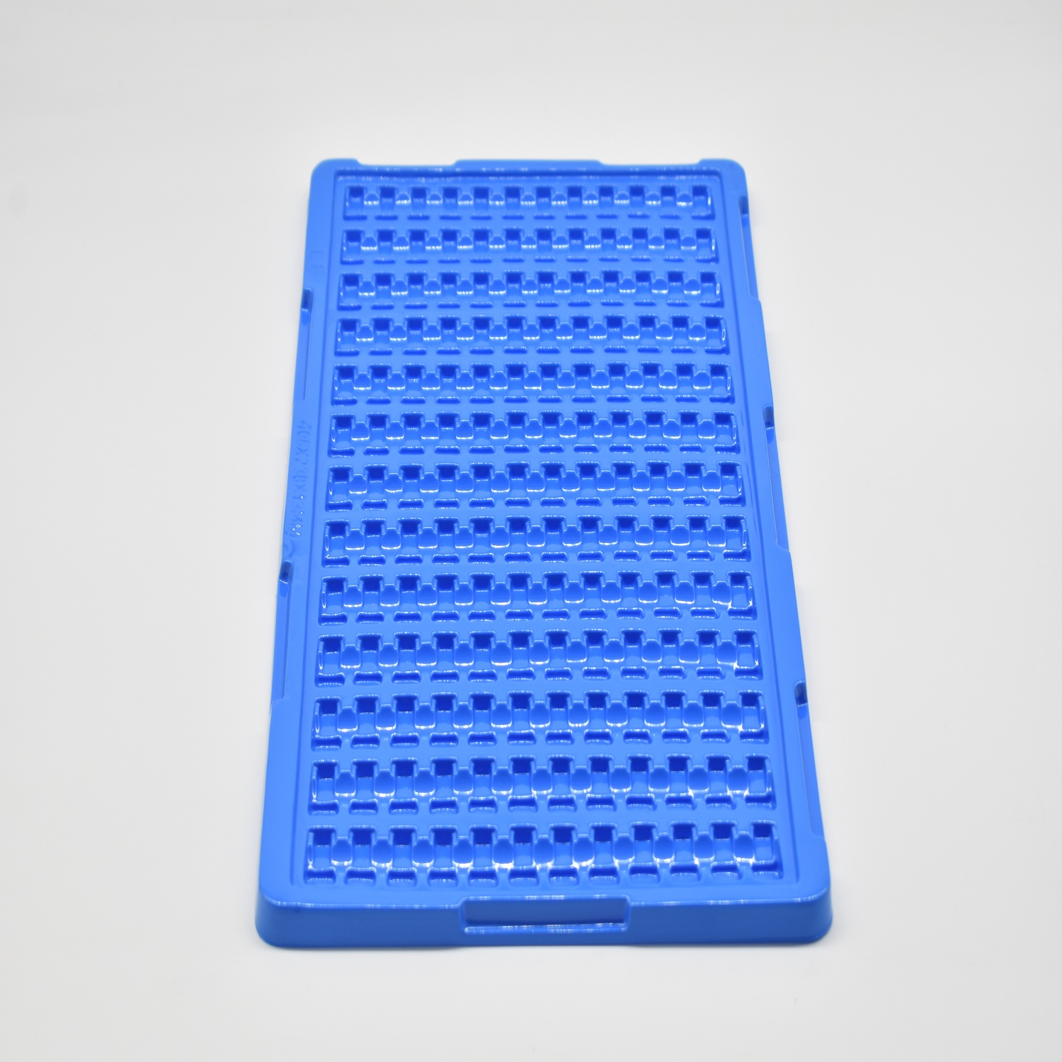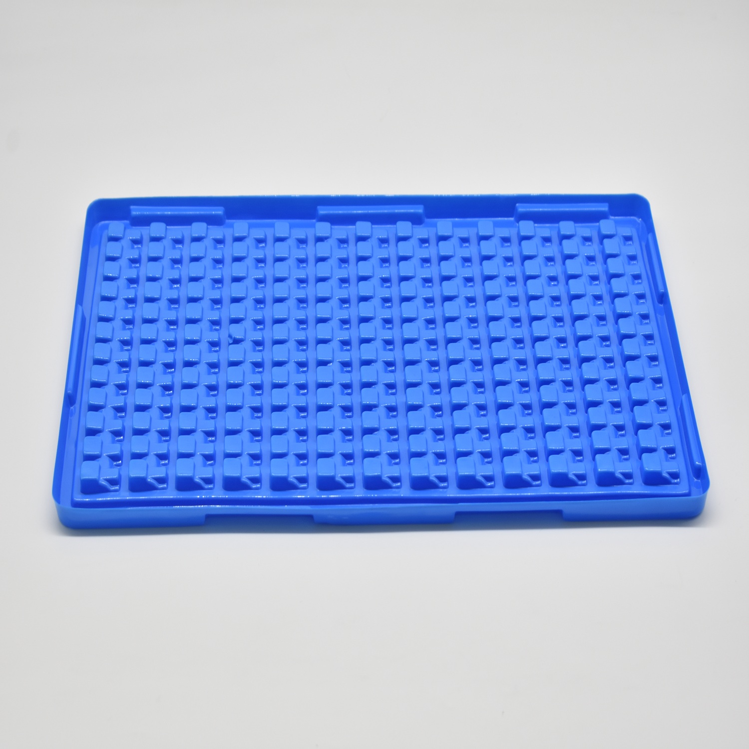 • The blister tray products can be customized according to your requirements, including the dimensions, thickness, shape and so on. This blister tray is designed for placing copper sheet of charger plug. It is recyclable and durable.