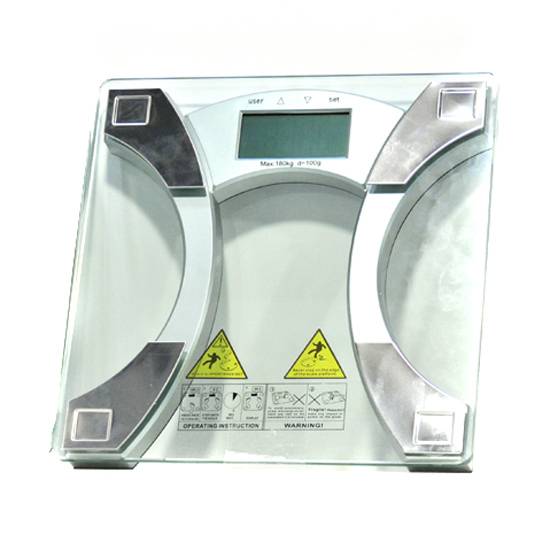 As shown is an electronic scale as well as a fat scale. With a glass as the top, this electronic cum fat scale is newly designed which matches well houses of any styles. This scale is equipped with the overload induction function.