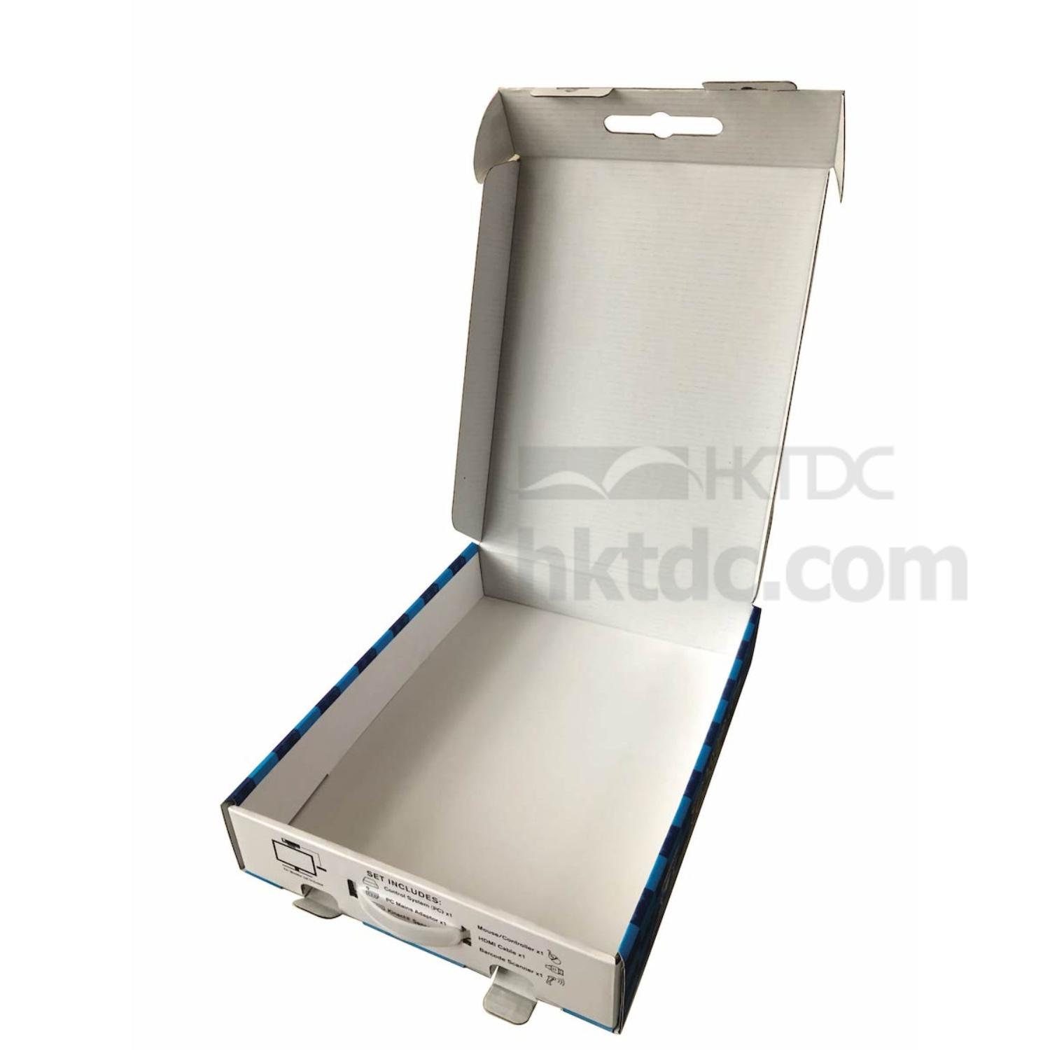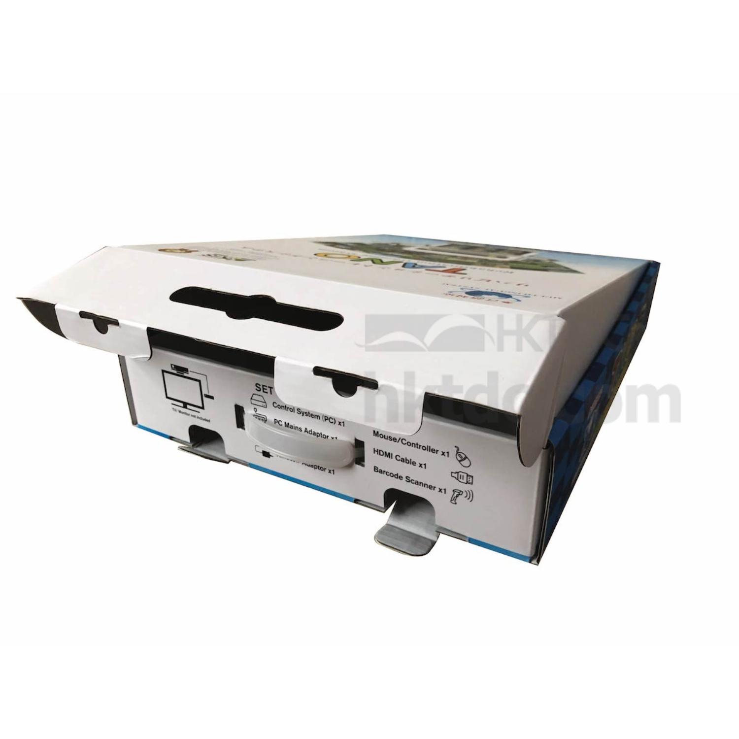 * Remarks: this box is designed for a electronic game packing. The structure is same as pizza box, that made by one piece paper, the lid with tuck in lock and 2 flaps at both side, it makes the box more steady and better protection.