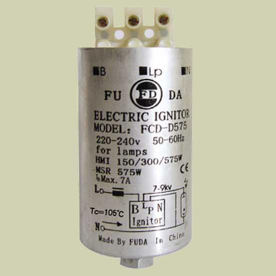 This is an electronic ignitor for high pressure sodium lamps and metal-halide lamps. In a sturdy housing, this ignitor is stable and reliable. This superimposed electronic ignitor uses frequencies of 50-60Hz.