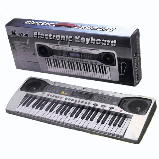 This electronic keyboard comes with a smart style. It features four octaves and comfortable keys. The keyboard comes with a microphone, which enables the player to sing wonderful songs while producing nice melodies.