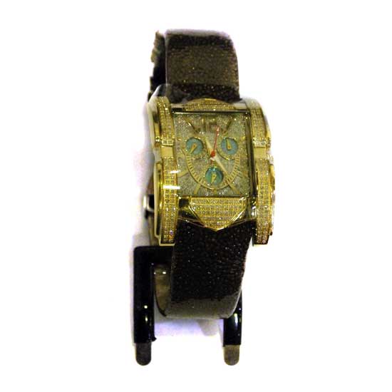Presented is an exquisite electronic quartz watch with an opulent style. The precisely crafted watch case is made of stainless steel and the strap is made of genuine stingray leather. Embellished with 244 1.1mm diamonds on the case and 235 0.9mm diamonds on the dial, this finely enchanting watch showcases a sense of elegance.