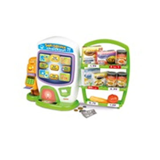This electronic self-service checkout till is designed to help children learn about money and self-service shopping skills. The toy uses various sound and lighting effects to instruct the little shopper. It also comes with 49 accessories, including paper receipt roll, play notes, coins, play food tins, cartons, etc.