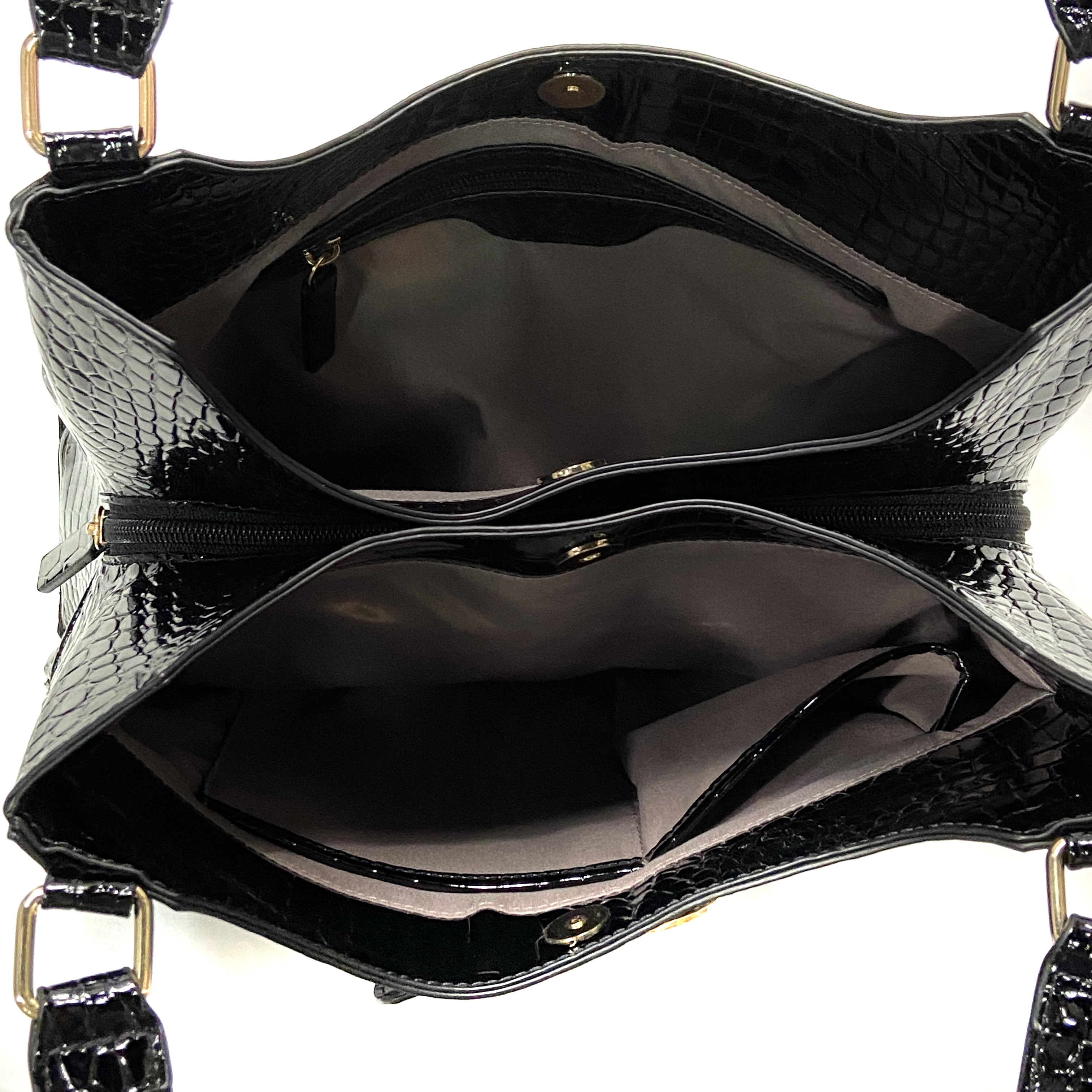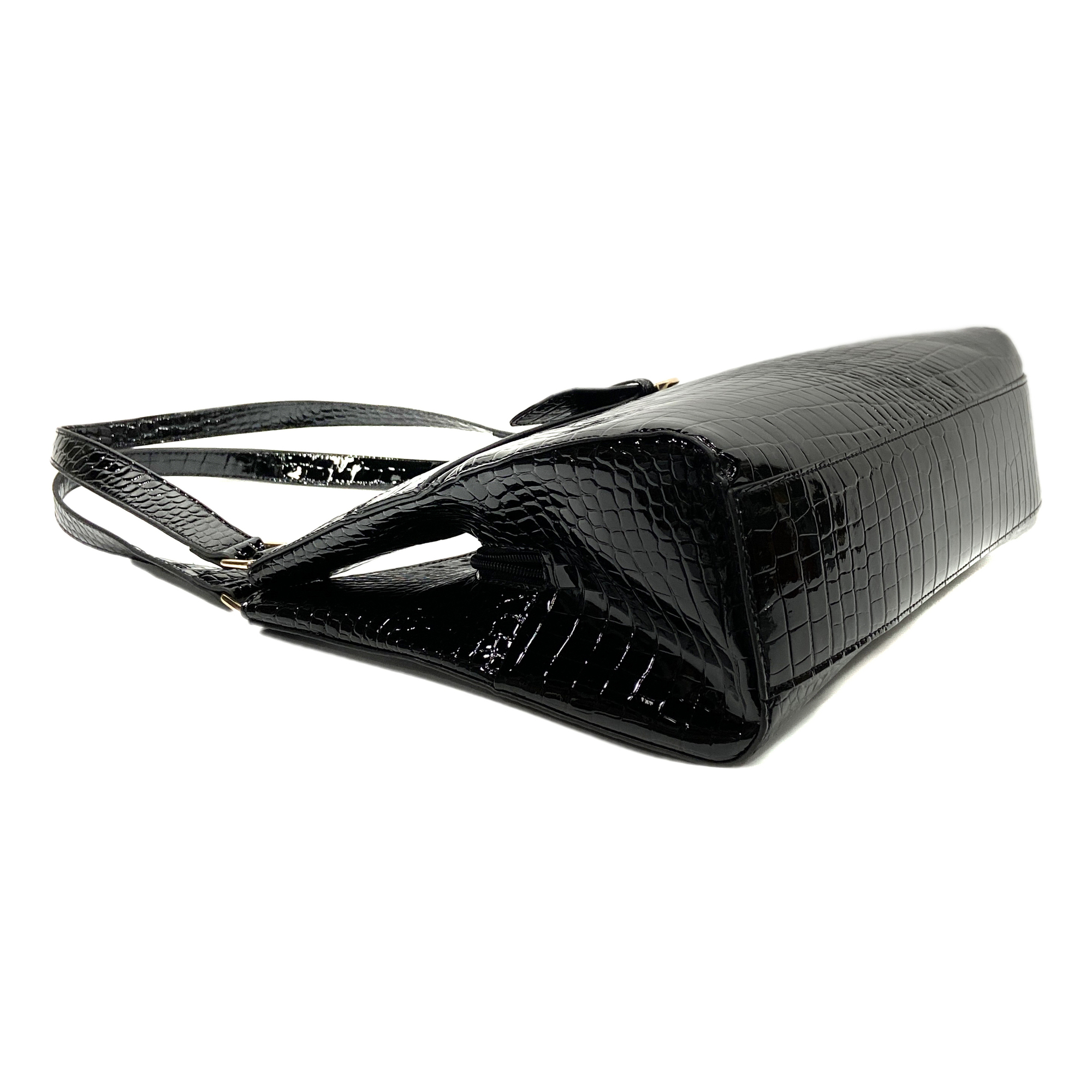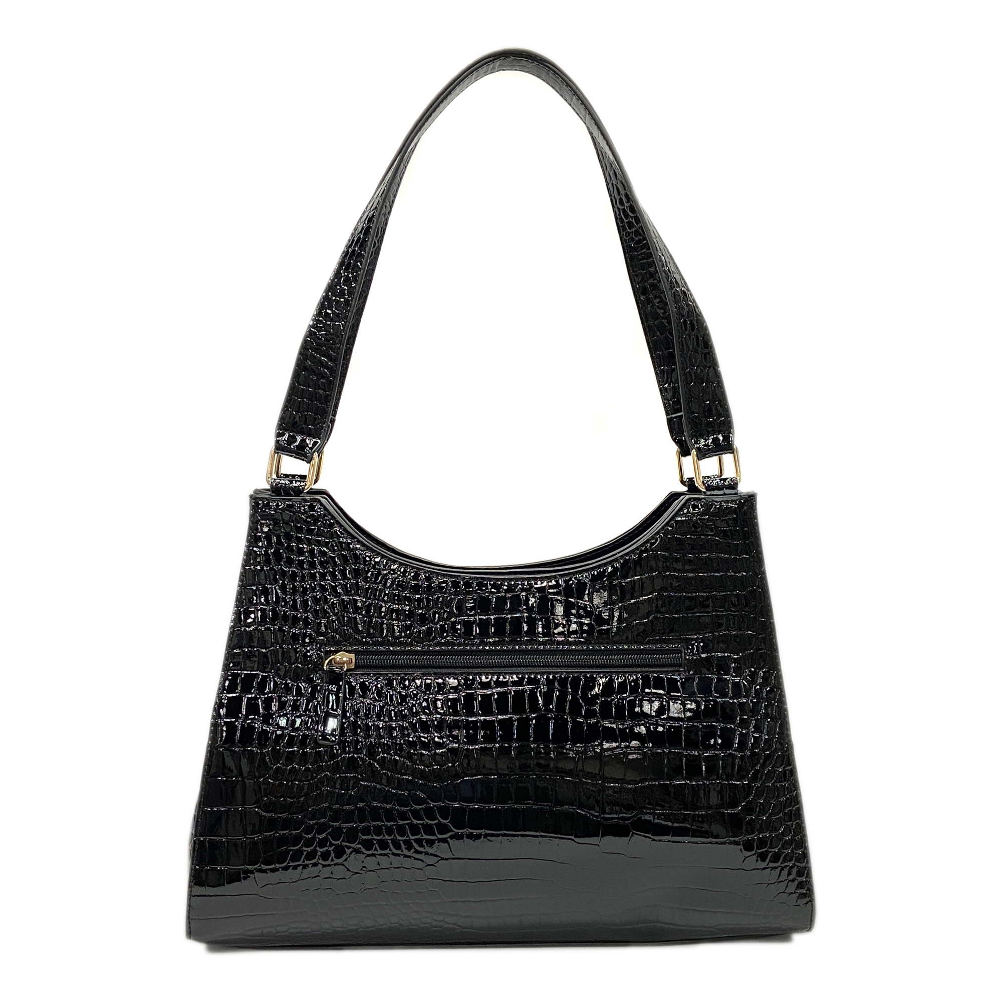 Elegant Croco-effect Imitation Leather 2 pockets with magnetic snap closure & 1 pocket with zip pocket Women Shoulder bag Shoppinag bag Top handle Bag Tote bag Handbag Black