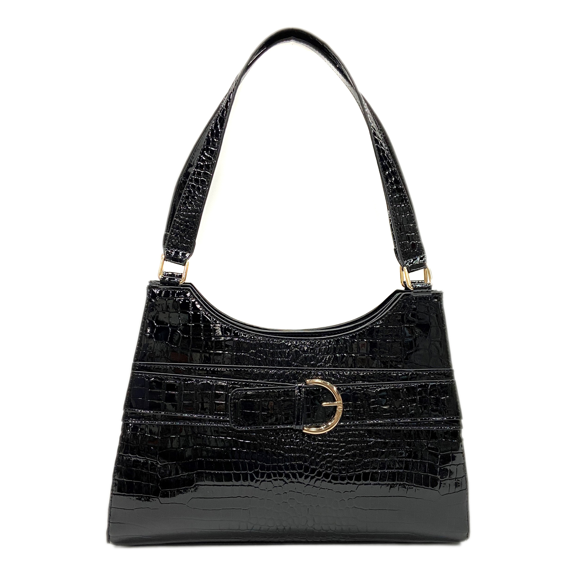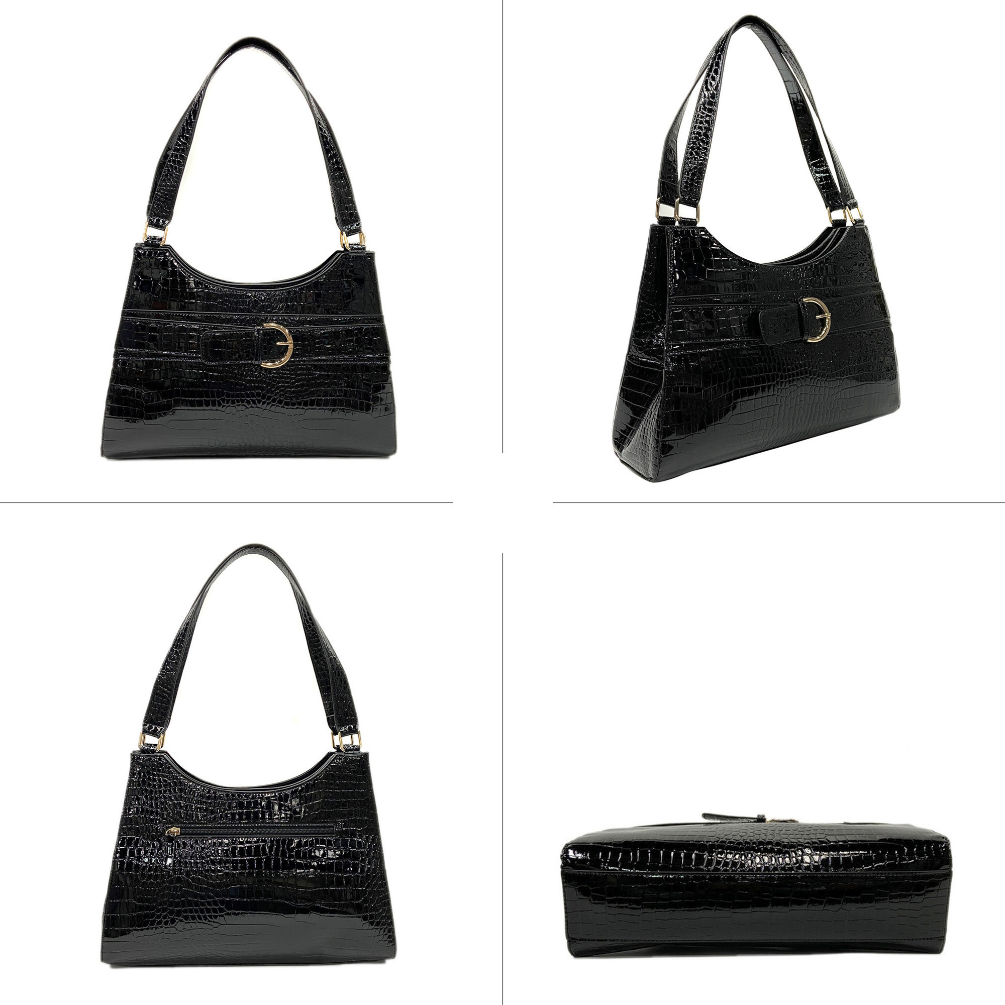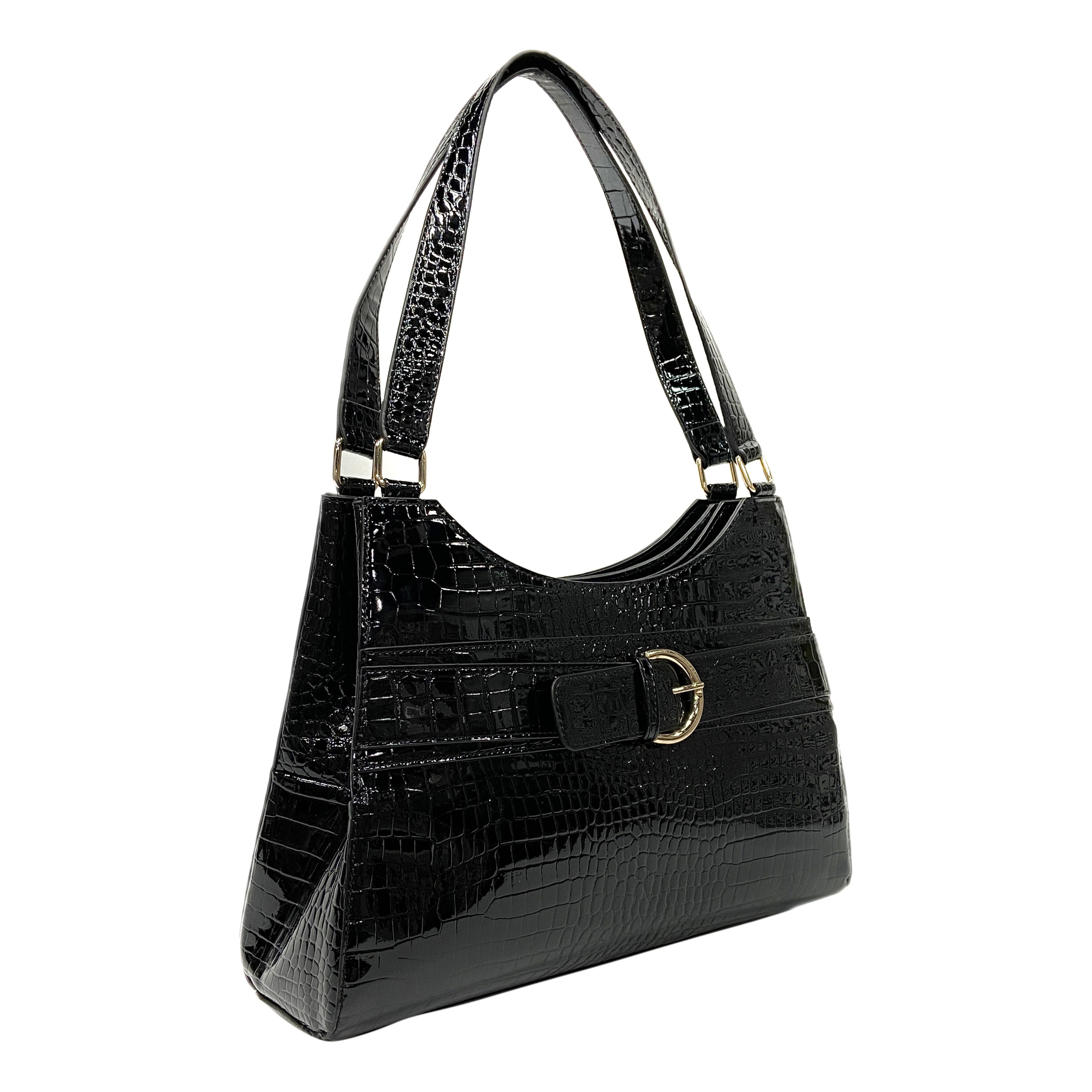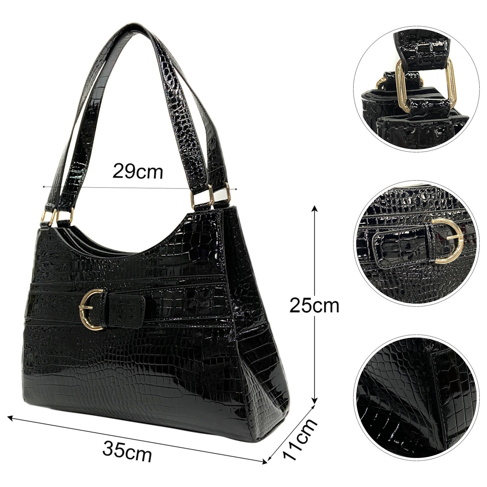 Elegant Croco-effect Imitation Leather 2 pockets with magnetic snap closure & 1 pocket with zip pocket Women Shoulder bag Shoppinag bag Top handle Bag Tote bag Handbag Black