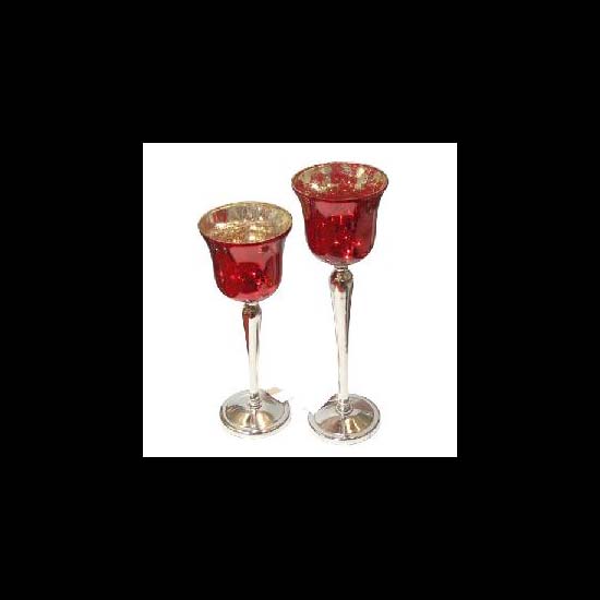• The dainty glass with polished metal stand is bright ruby red in color with tints of gold