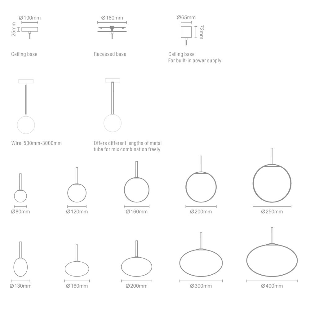 Round or oblate glass φ80/120/160/200/250/300/400mm, with 2M suspension cable