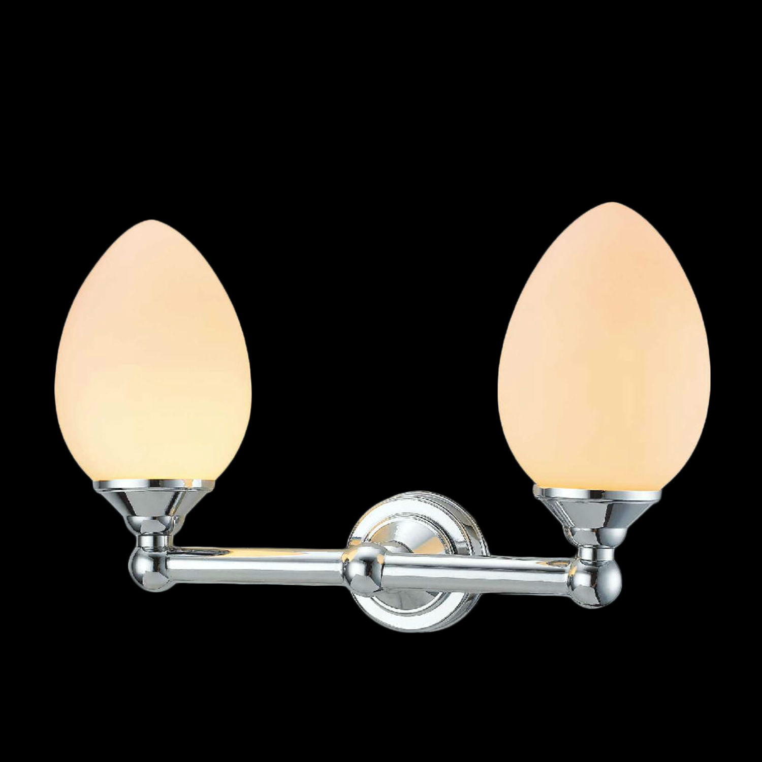 This is an IP44 waterproof bathroom wall light with a simple yet stylish design. This piece is fitted with a two heads drop opal glass lampshade for a distinguished style. This light is installed in the bathroom so as to create some soft illumination to make you relaxed and comfortable.