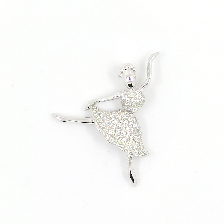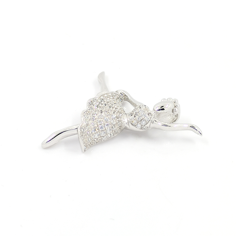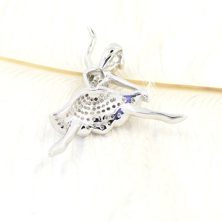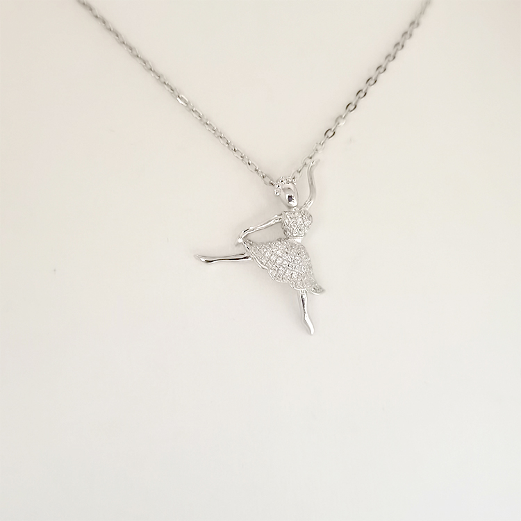 Elegant Style Women Sterling Silver Necklace 3A Zircon Dancing Girl Diamond Iced Out Pendant