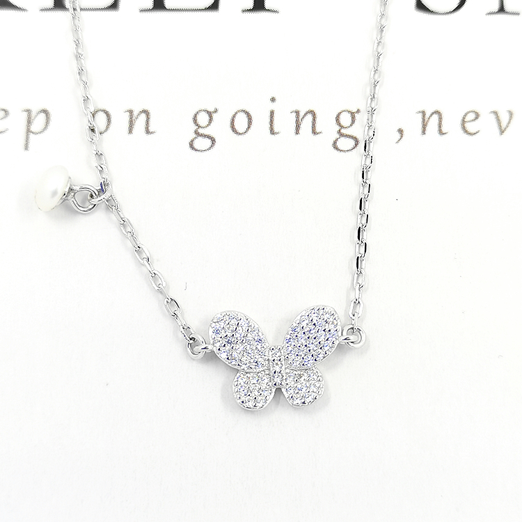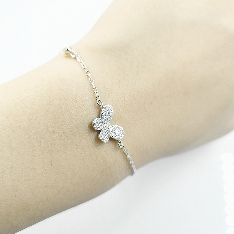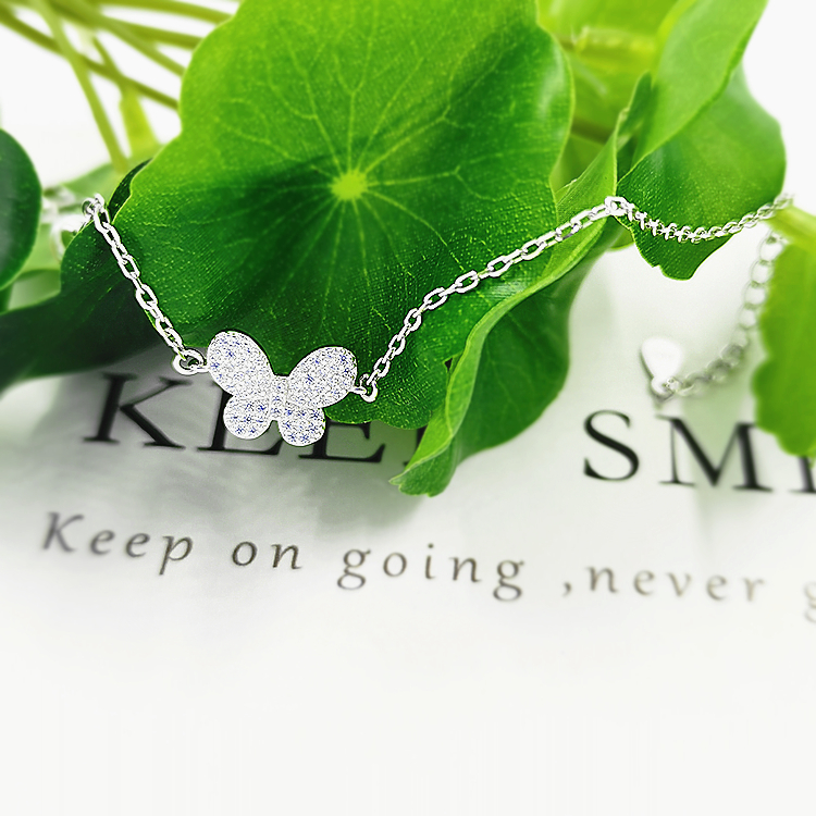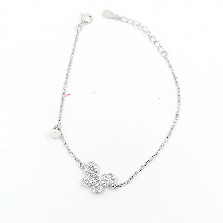 Elegant butterfly bracelet cubic zirconia micro pave pearl 925 sterling silver ankle rhinestone bangle bracelet jewelry