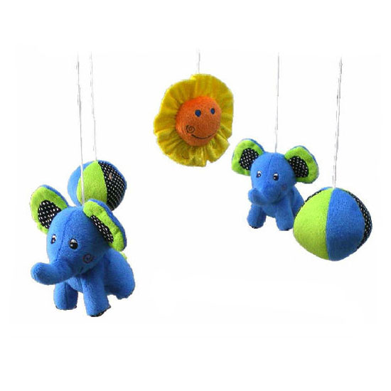This musical mobile toy can be easily hanged on a baby's bed. The dangling small elephants, balls and sun with bright colors can nicely attract babies. When it rotates, soft lullaby music is played for a soothing effect.