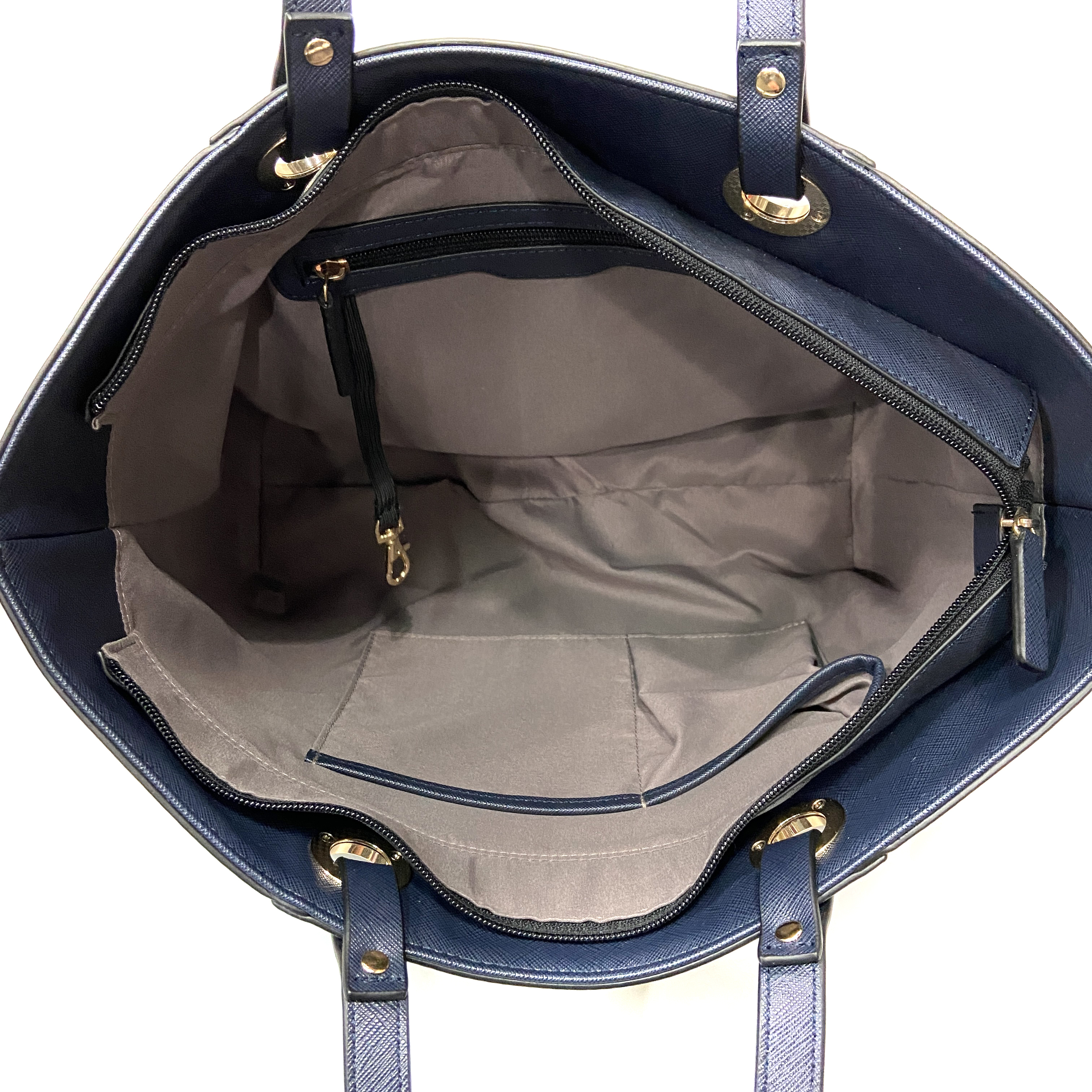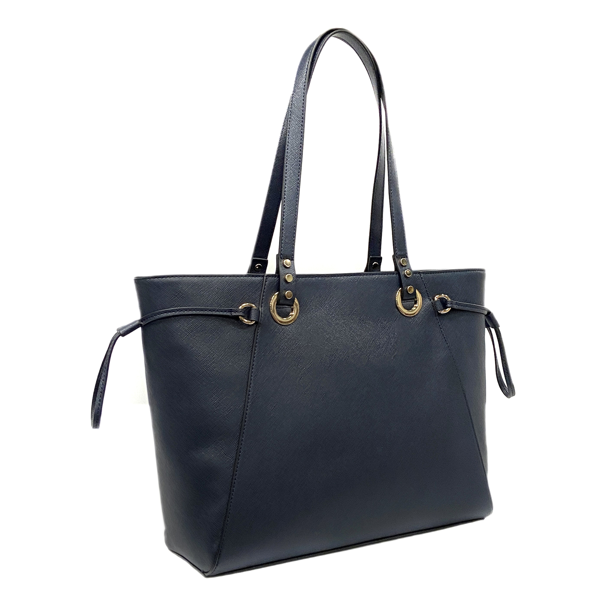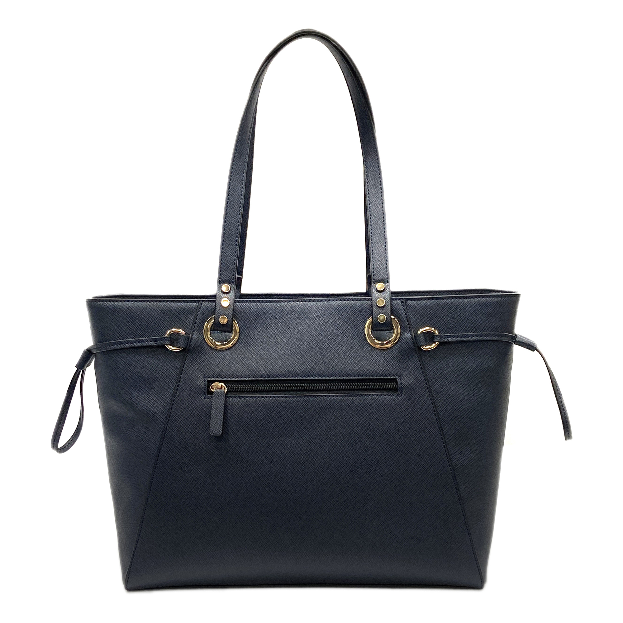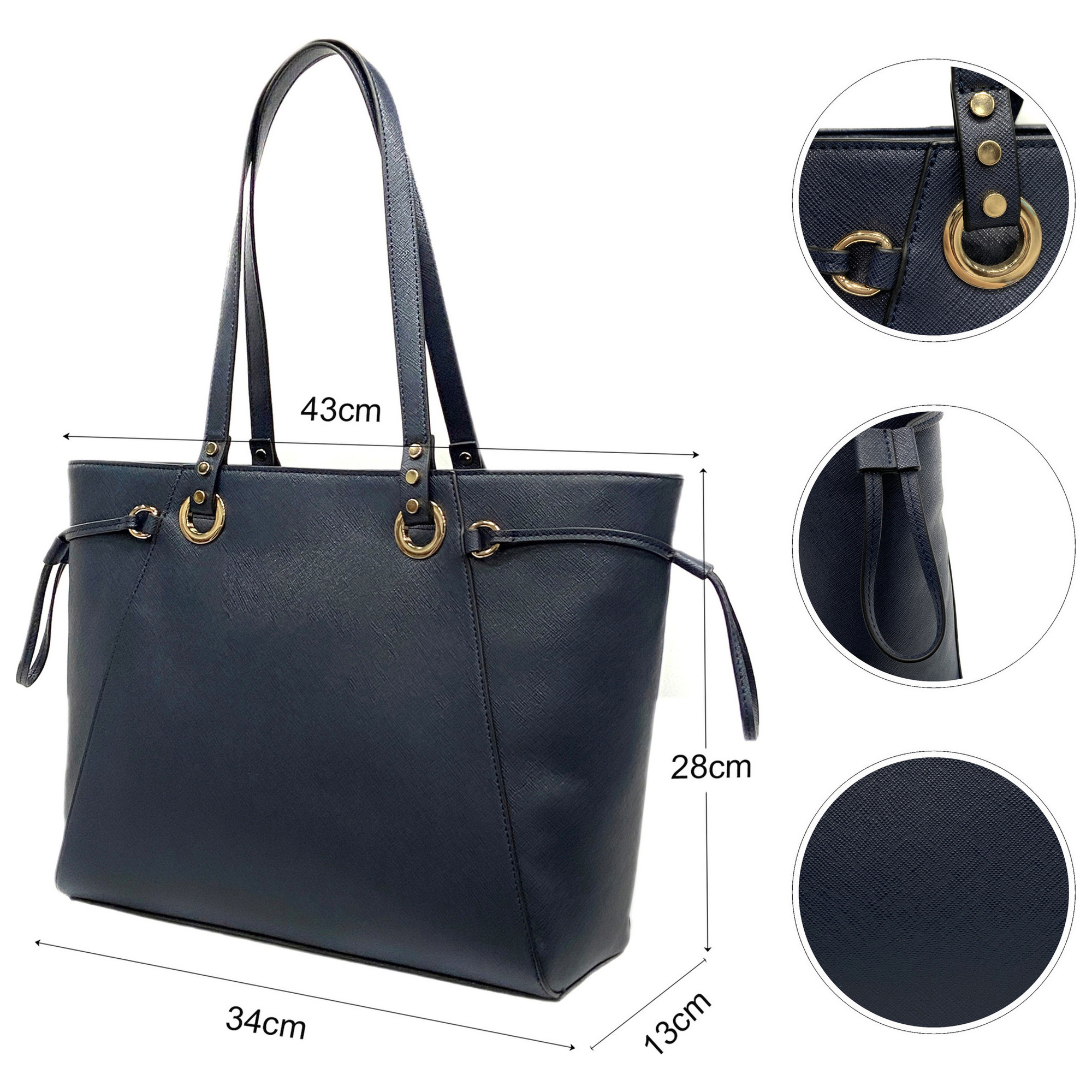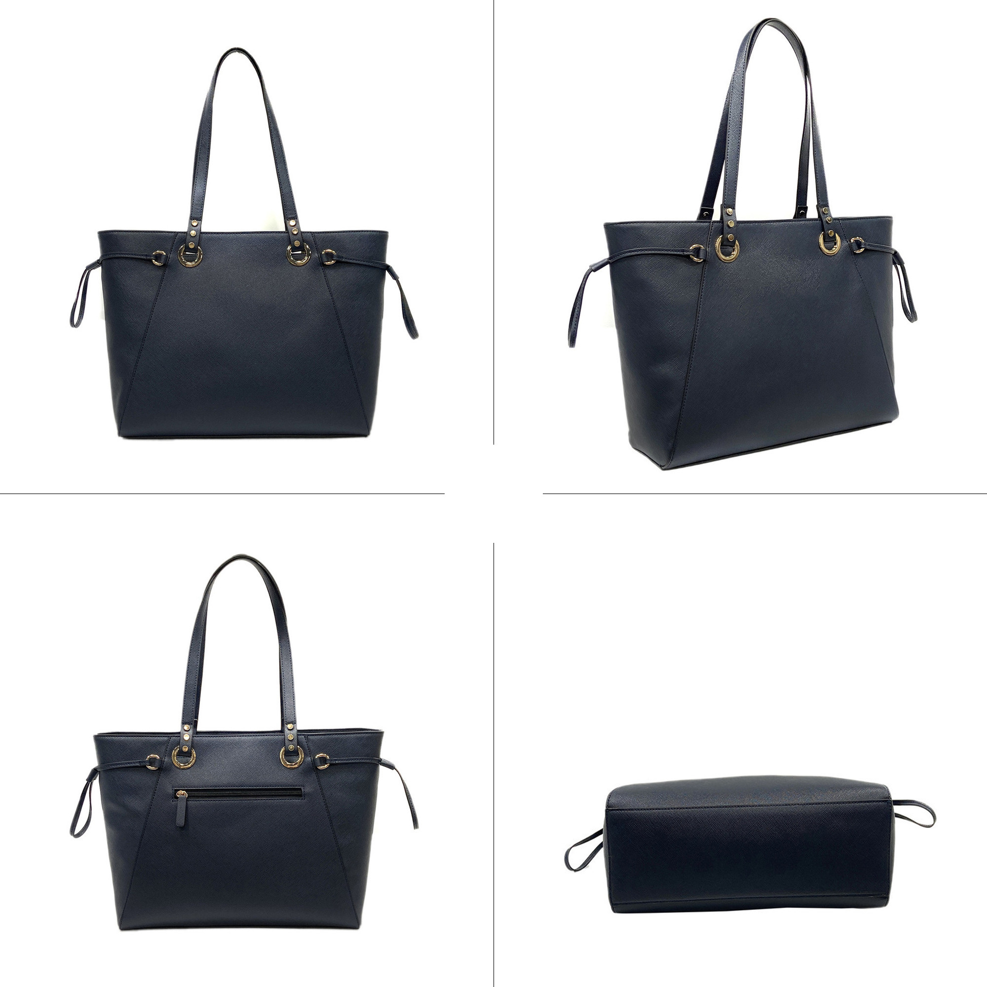 Embossed Saffiano Imitation Leather Women Handbag Tote bag Shopping bag Zipper closure Navy