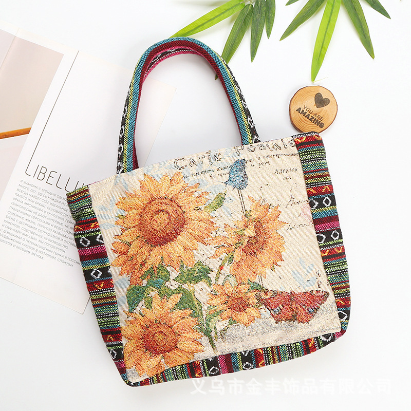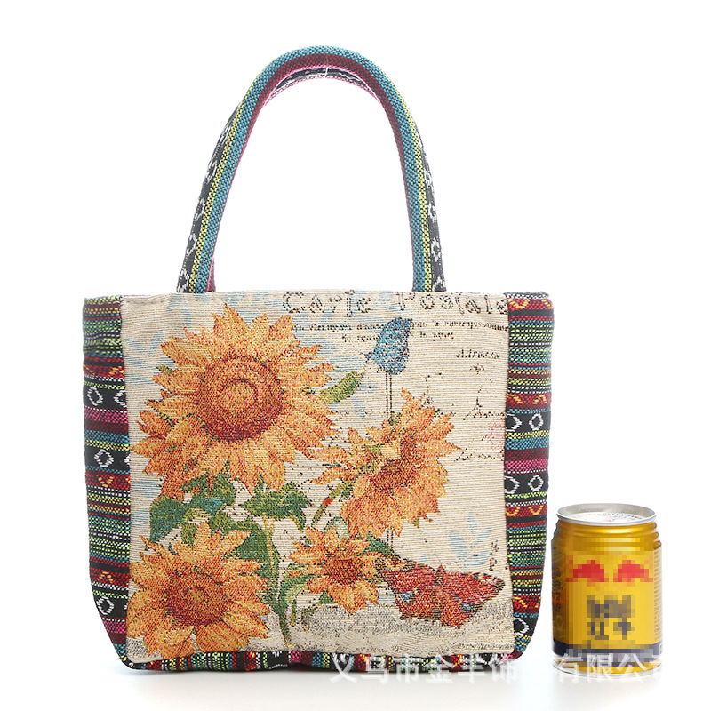 Embriodery Sunflower Design Tote Bag