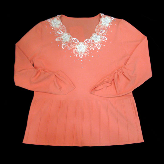 Highlighted is a ladies’ blouse adorned with exquisite floral embroideries around the collar. The beaded details offer added style and elegance. This long-sleeve blouse makes a fashionable addition to add in your wardrobe.