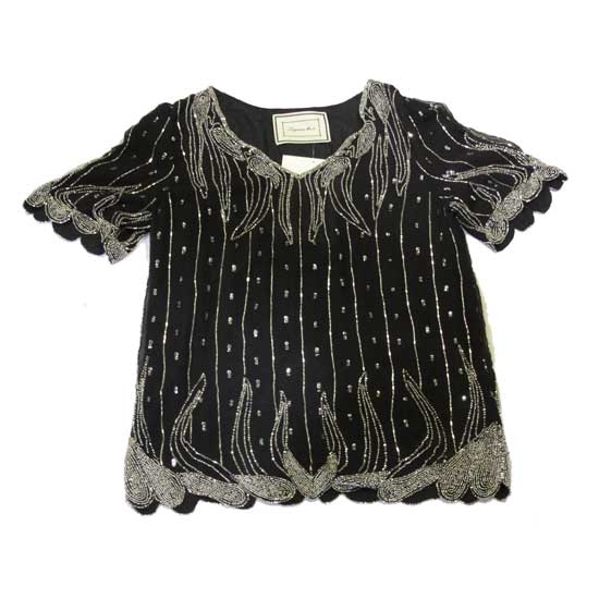 The black blouse crafted of silk is embroidered with stunning patterns. The junior blouse features fashionable bead embroidery on the neckline. This blouse with short sleeves is a great addition to your casual wardrobe.
