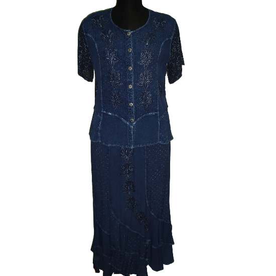 This ladies' wear set touts a button-down blouse and a maxi-length skirt. Made of smooth and soft material, this fashion set promises a gratifying comfortable fit. Adorned with sophisticated floral patterns, the short-sleeve blouse with an uneven hem and ruffled skirt individualize your formal wardrobe.
