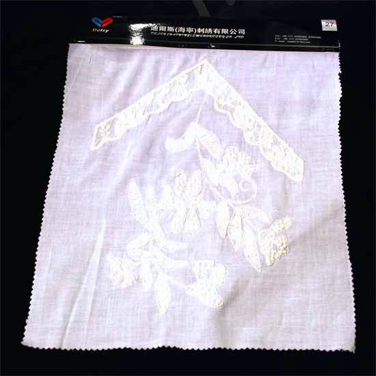This embroidered fabric comes in a soft color tone with a floral pattern delicately embroidered on. The thread is durable and smooth. This embroidered fabric is suitable for making curtains.