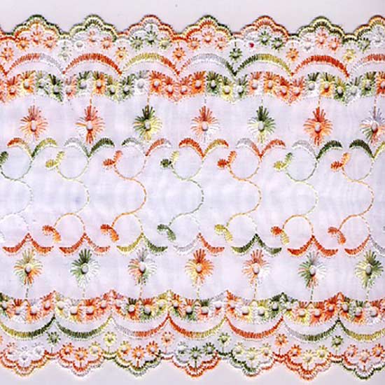 The picturesque embroidered lace boasts alluring floral patterns with exquisite details. It is machine made to bring rich and delicate lines. The embroidered lace is great for traditional and ethnic clothing.