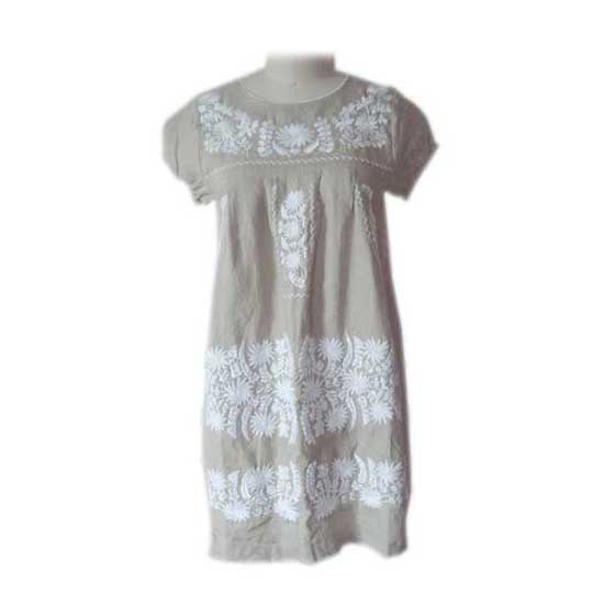 This pictured linen dress provides a feminine look and a snug fit. The embroidered details across the bodice and bottom add an elegant accent to the one-piece dress. The 100% linen construction ensures excellent breathability and wearing comfort. This pretty embroidered linen dress is an ideal addition to your summer wardrobe.