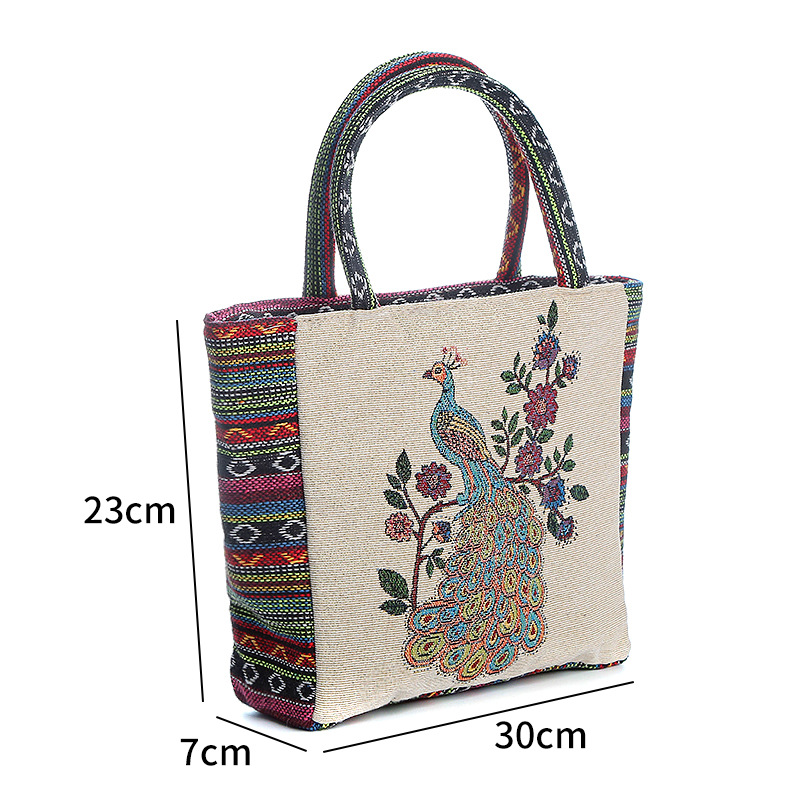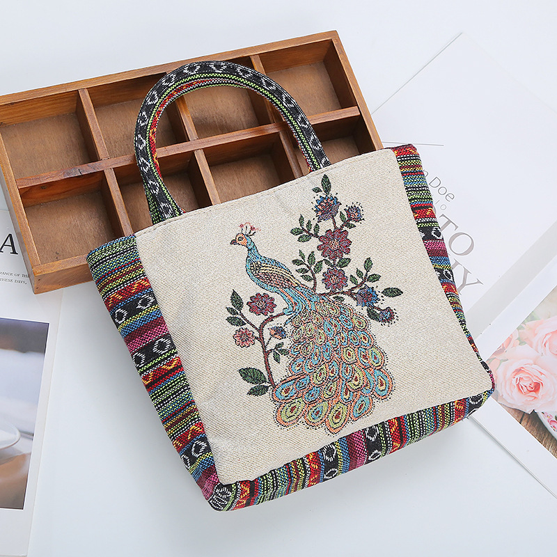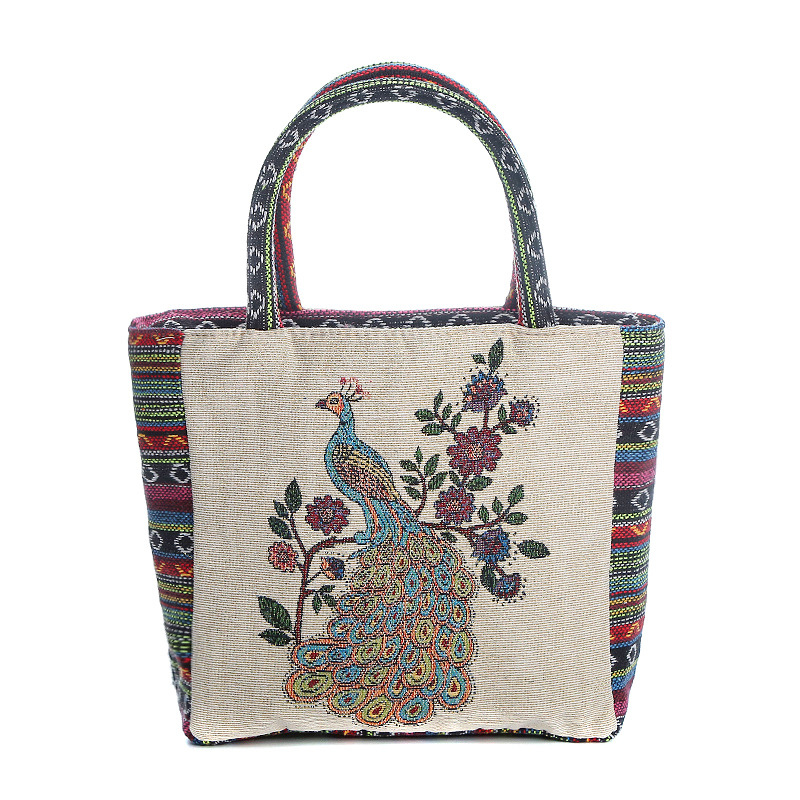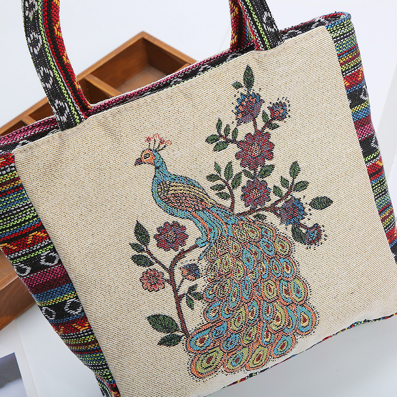 Embroidered Peacock Canvas Bag