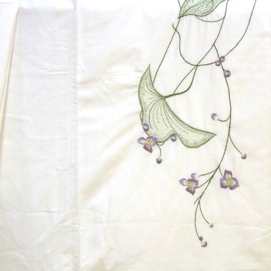 This is a set of embroidered pillow case and bed sheet which is made of 100% cotton. There are some hand-embroidered patterns of flowers and branches on the linens.