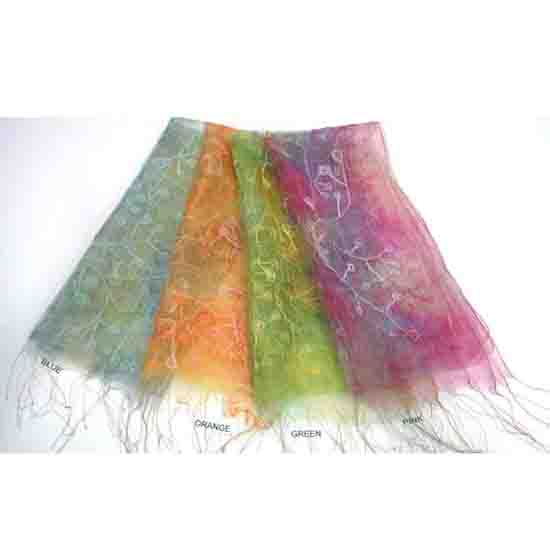 This series of scarves give sheer, fairy and feminine colors. The pure silk composition ensures a soft and loving touch on the skin. The exotic embroidered details add a touch of style to the scarves.