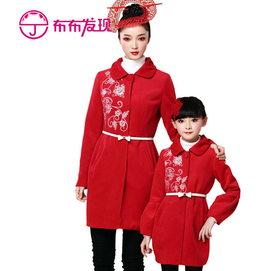 This is a trendy coat in a plain color with exquisite embroidered accents on the front for added elegance. It comes in assorted sizes for both adults and children. The high-quality material gives you a comfortable wearing experience.