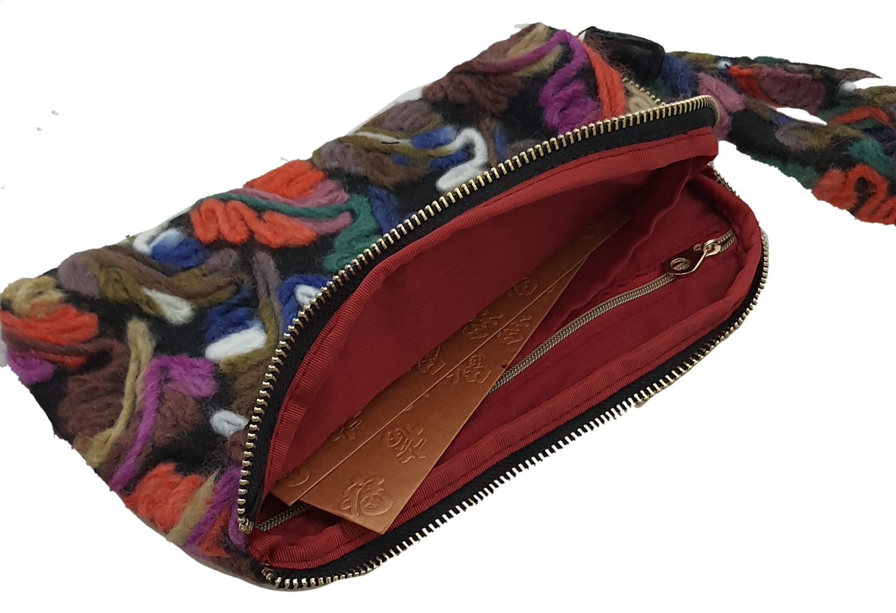 Fall Season Embroidery Wool Look Fabric Carry Bag Zip Pouch Lai See Purse
