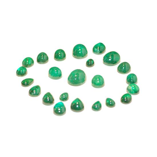 These are emeralds which are of cabochon cut. The emeralds aree of oval shape or pear shape which are suitable for making all sorts of emerald jewellery.