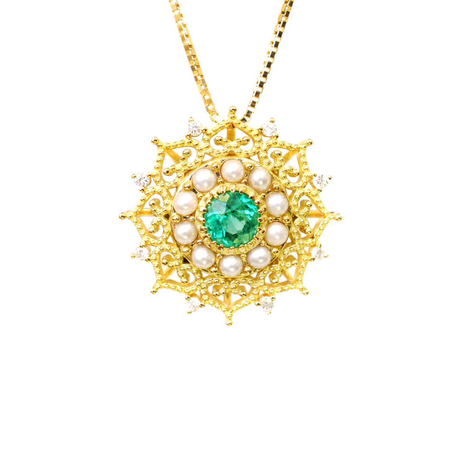 • K18 emerald, pearl & diamond