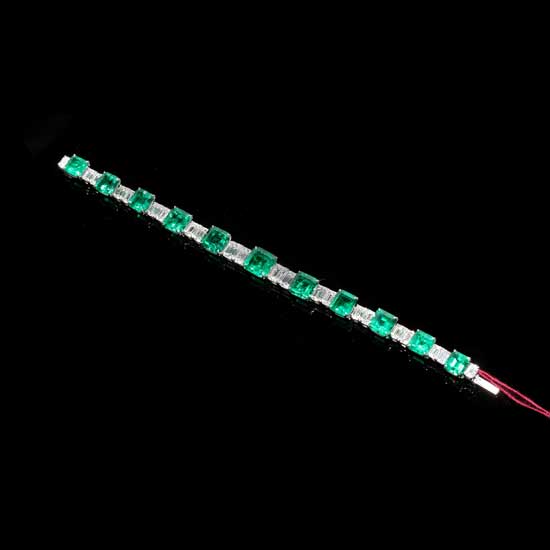 This pictured emerald bracelet offers a look of classic beauty. The bracelet is linked with alternating emeralds and diamonds for ultimate gleams. This enviable piece brings you irresistible charm.