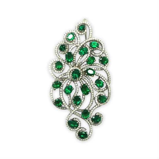 Offer a subtle touch of sparkle to your outfits with this prepossessing emerald brooch. Designed with delicate floral patterns, this stylish brooch is finely embellished with dazzling green emerald stones for added glamor and elegance. Flaunting an sophisticated and deluxe design, this decorative jewelry item will give extra winsomeness to your garments.