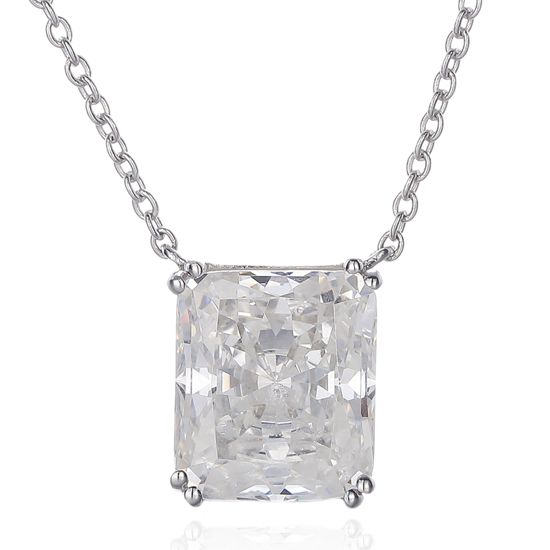 Emerald Cut Diamond G Cubic Zircon Rhodium Silver Necklace