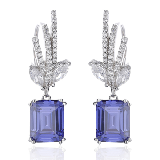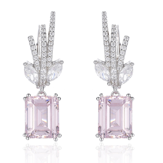 Emerald Cut Diamond Pink And White Cubic Zircon Rhodium Silver Earring