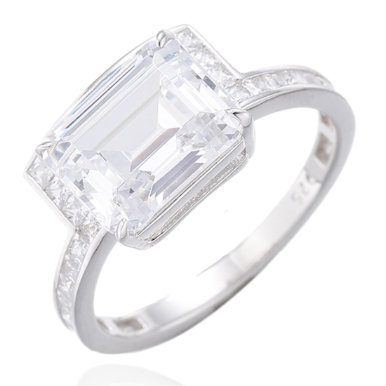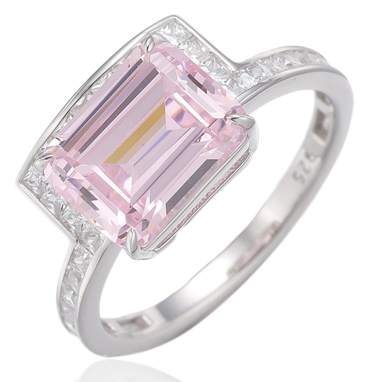 Emerald Diamond Pink And Square White Cubic Zircon Rhodium Silver Ring