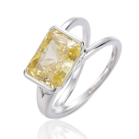 Emerald Diamond Yellow Cubic Zircon Rhodium Silver Ring