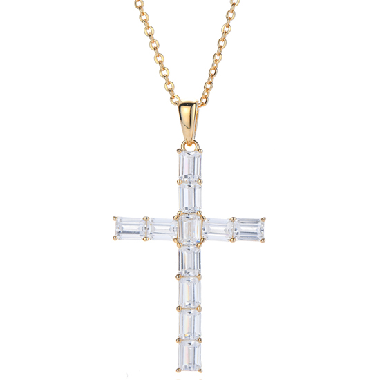 Emerald Golden Cubic Zircon Rhodium Silver Pendant