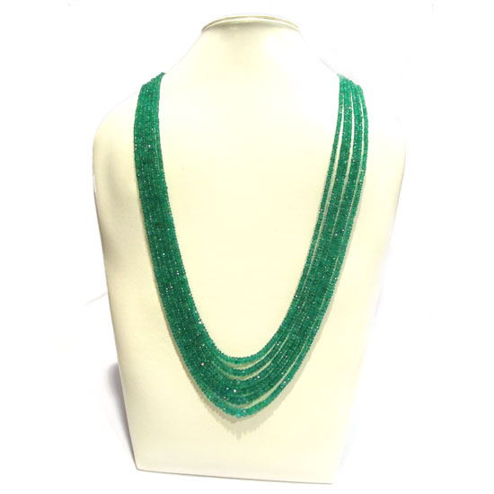 The necklace commands attention with its grand and presentable 6 row design. It is strung with green jade-colored emerald beads which offer bright sparkles. This gorgeous necklace is a fail-safe choice for receptions or cocktail parties.