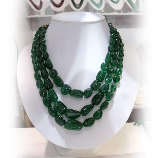 This fashionable necklace is linked together by emerald beads which flaunts an enchanting green color. The necklace has a sleek surface and delivers an elegant touch. The well-designed necklace is a great addition to your jewelry collection.