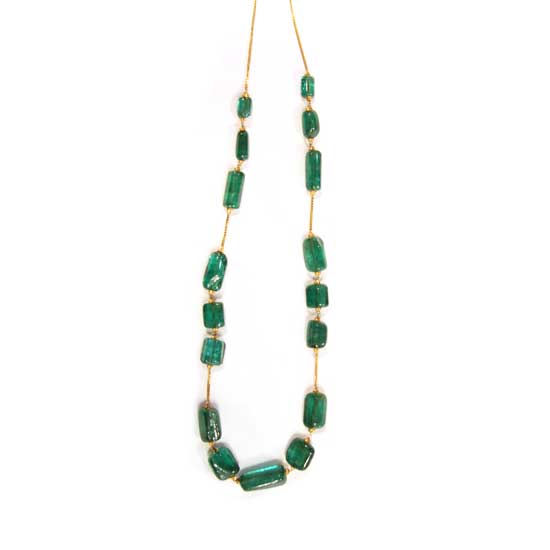 This emerald necklace comes with a graceful and attractive appearance. The exquisite emeralds shows a charming green color. The fine-looking necklace goes well with your daily wear.