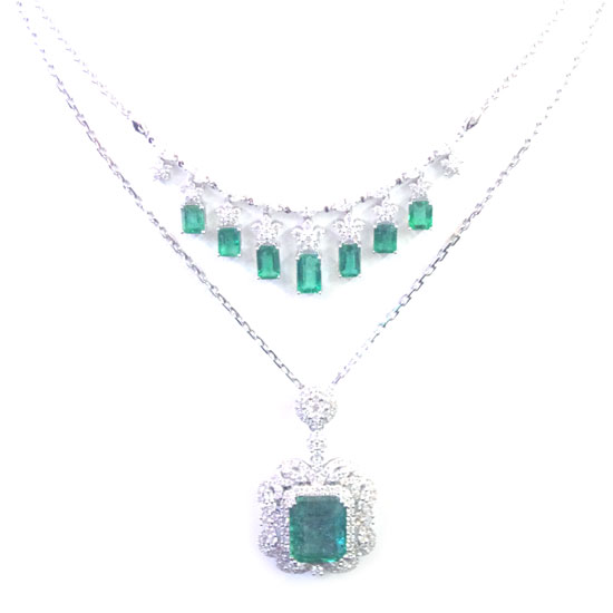 This two-layered emerald necklace will delight every lady with its excellent radiance. Each of the faceted emeralds exhibits excellent translucency and purity. Its vibrant, bright green color will complement all skin tones.