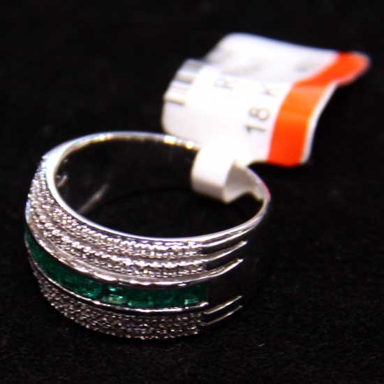 The finger ring flaunts white gold casting for added class and style. It comes with glittering diamonds for a lustrous appearance. The charming emeralds make it stand above the rest.